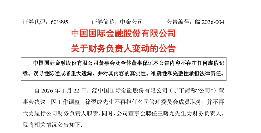 中金公司人事变动:投行老将掌财权,80后新锐任董秘